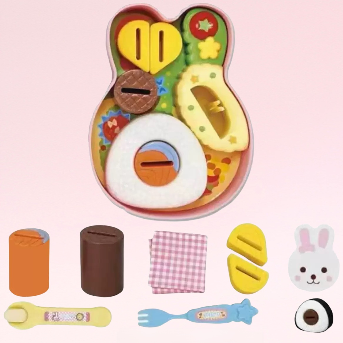 ● かわいいうさぎデザインの弁当セットで、子どものごっこ遊びやおままごとがさらに楽しくなるキッチンおもちゃです。