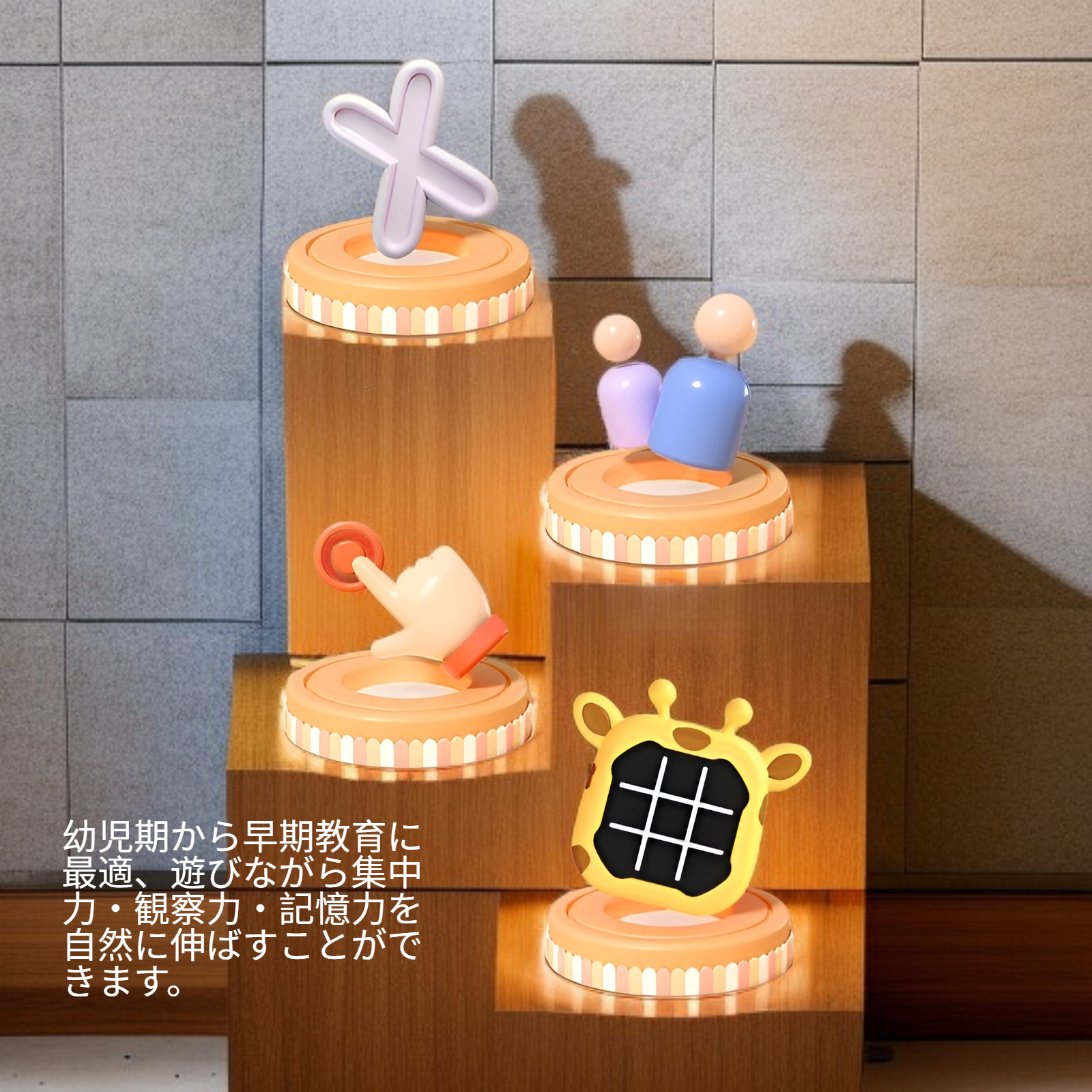 ● 子供の記憶力と論理的思考力を同時に鍛える、電子式三目並べ知育ゲームで楽しく学習できます。